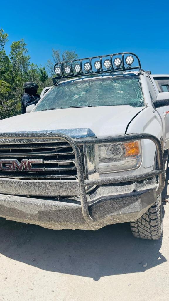Asimismo, en la entrada al municipio de Méndez, Tamaulipas, un vehículo Ranger Rover color negro, se atravesó en la carretera, efectuando disparos con armas de fuego, repeliendo la agresión el personal e iniciando la marcha en retroceso citado vehículo hasta impactarse contra la vegetación a un costado de la carretera.