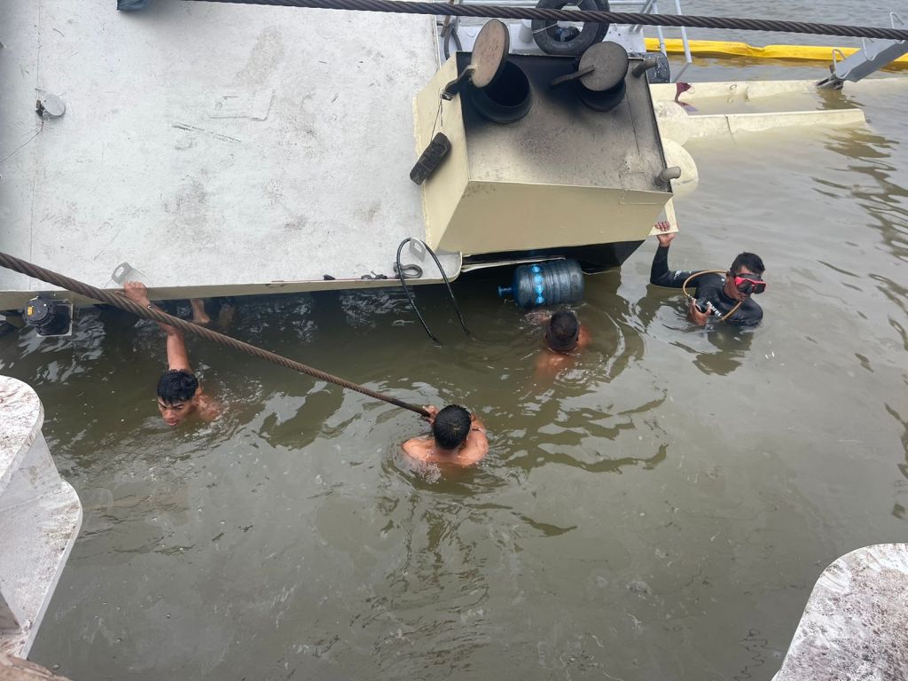 Tras el desperfecto, el cuarto de máquinas la mañana de este sábado se hundió.