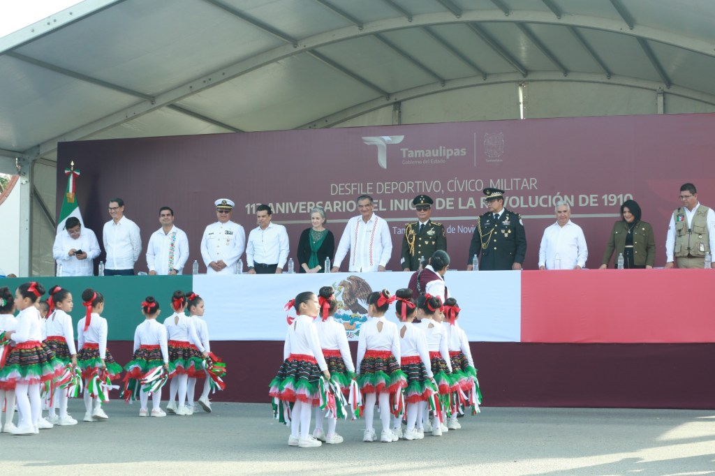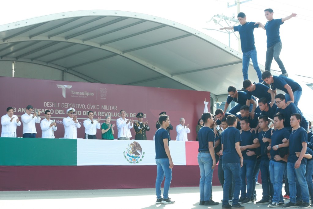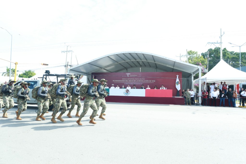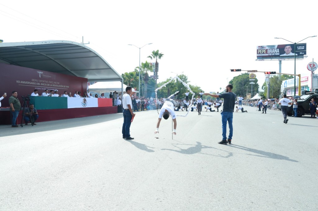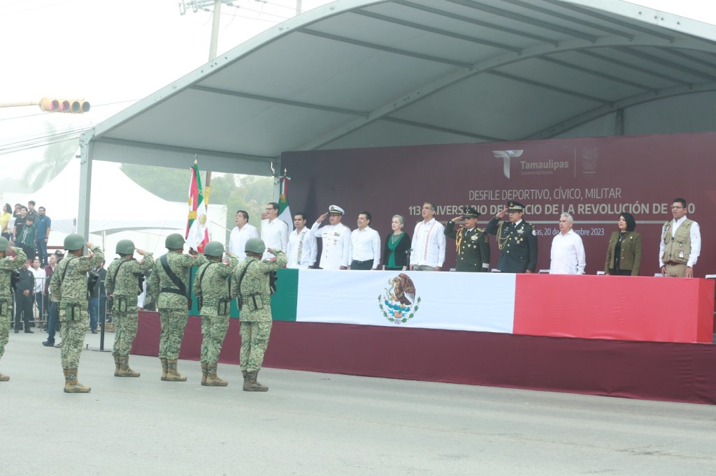 Ciudad Victoria, Tamaulipas.- El gobernador Américo Villarreal Anaya encabezó con solemnidad el desfile cívico-deportivo militar en Ciudad Victoria, con motivo del 113 aniversario del inicio de la Revolución Mexicana. Más de 2,600 participantes, entre autoridades, fuerzas armadas y representantes educativos, recorrieron el bulevar Tamaulipas durante tres horas y media, marcando un momento histórico de reflexión y conmemoración.