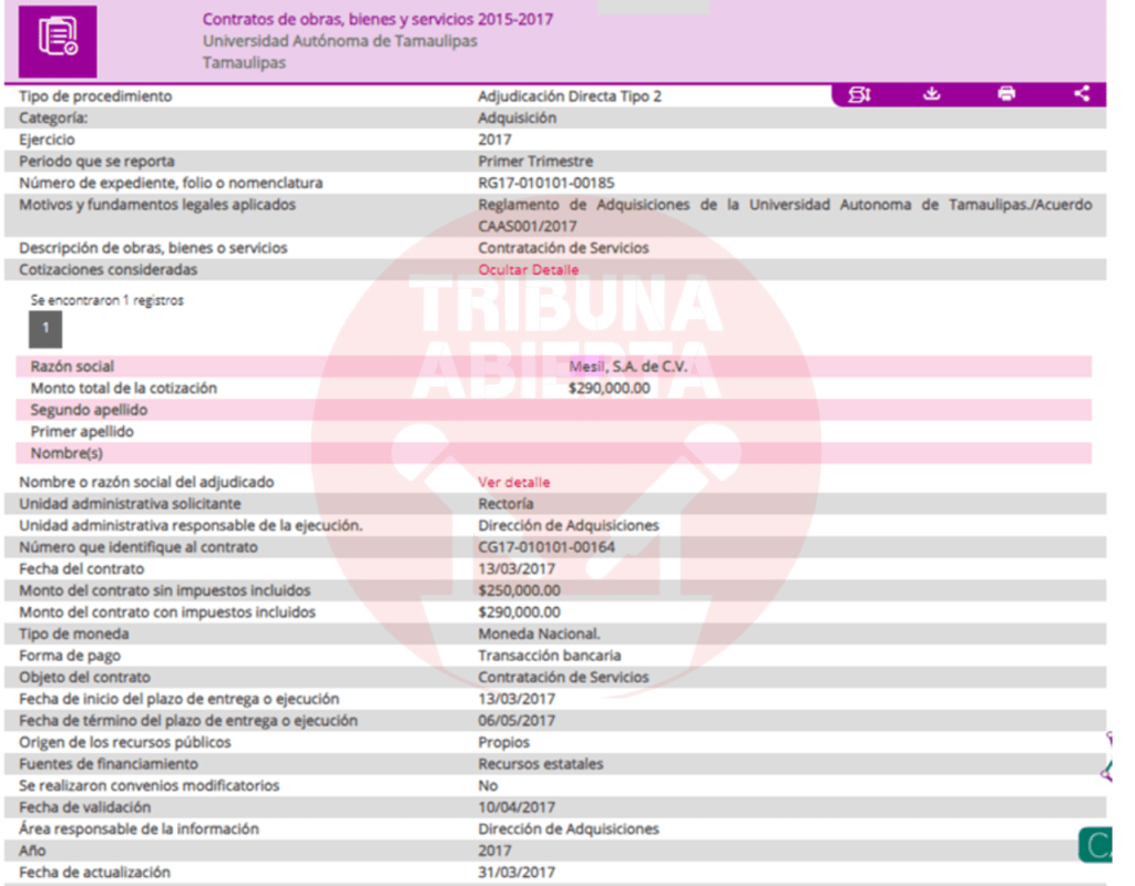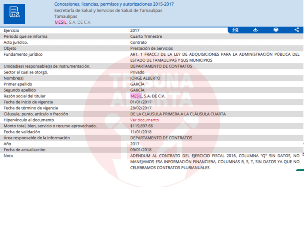 Sabemos que nuestro compañero y amigo Alan Morales, quien publicó el artículo que Tico aseguró era mentira, era completamente verídico, por lo que el equipo de Tribuna Abierta se dio a la tarea de buscar todos los contratos que ligan a Jorge García y su empresa Messil con Cabeza de Vaca.