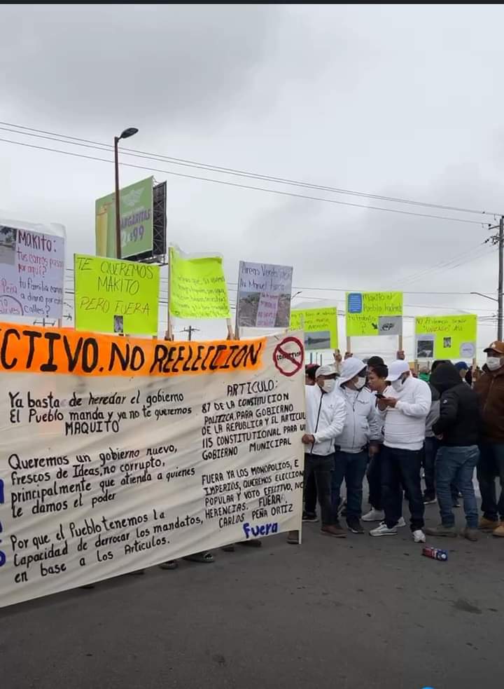 En las pancartas de los manifestantes se leían textos contra el alcalde por las carencias de servicios y obras públicas en las colonias, «Parece que vivimos en la luna, por tanto cráter, fuera makito». «Simplemente, te queremos fuera», entre otras consignas.