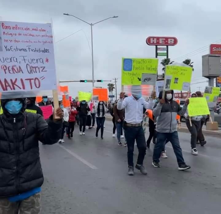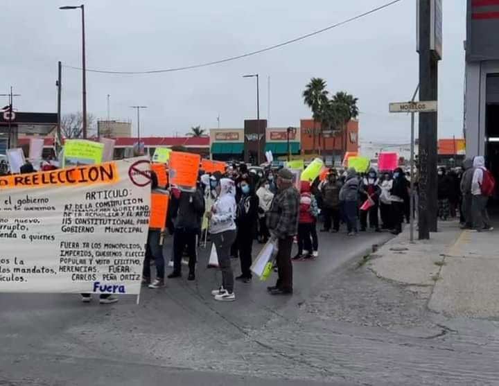 En punto de las 9:00 horas de este viernes 1 de marzo, los manifestantes con pancartas y mantas en mano iniciaron una mega marcha desde un conocido centro comercial del bulevar Morelos hasta la presidencia municipal para exigir la ‘no reelección de Peña Ortiz’.