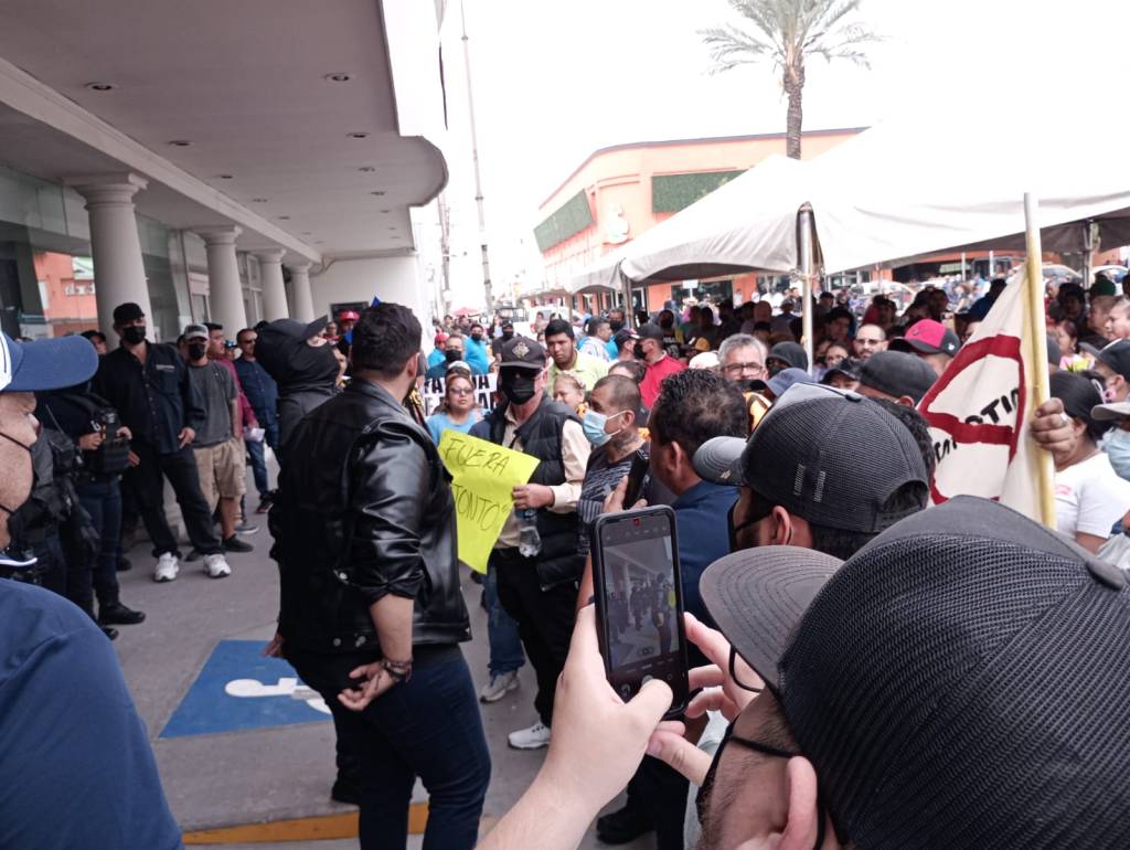 Afuera de Palacio Municipal se apostaron más de 2 mil personas, muchos de estos eran integrantes de los grupos de tianguistas que han protagonizado tres manifestaciones desde la semana pasada.