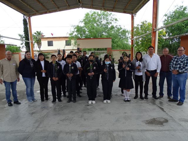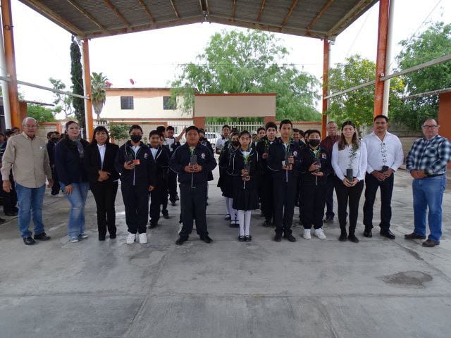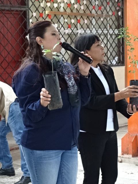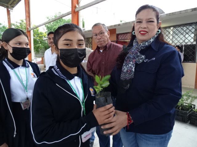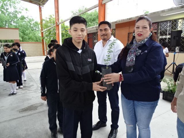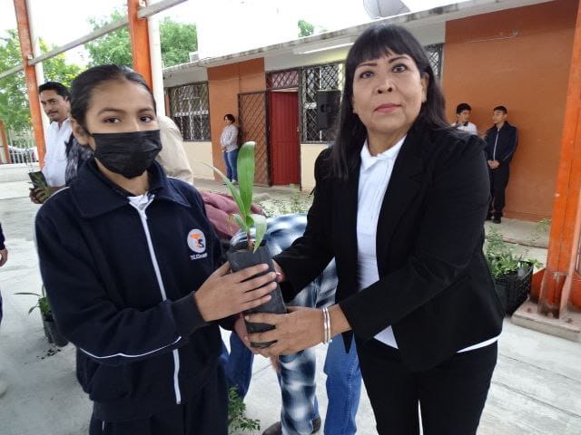 En esta actividad realizada en la Telesecundaria Mariano Matamoros, la representante de la dependencia federal, San Juanita Garza, acompañada por autoridades locales, entregó 250 árboles con motivo del Día de la Tierra. El propósito es que cada familia adopte un árbol y lo plante en sus hogares, contribuyendo así al aumento de áreas verdes en la comunidad.