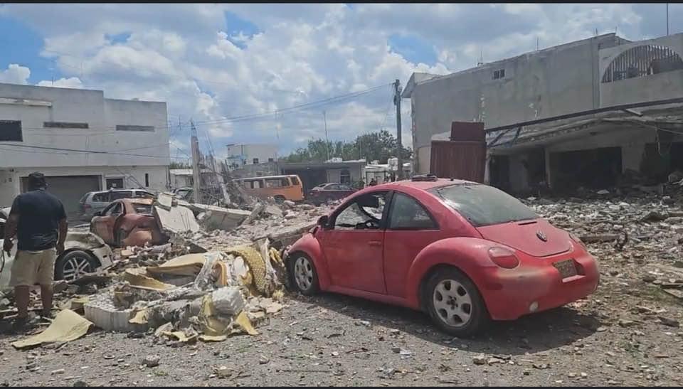 La onda expansiva afectó a decenas de construcciones en los alrededores, generando grandes daños estructurales en casas habitación y negocios. En total, más de diez vehículos resultaron severamente dañados, como se aprecia en las imágenes del lugar, donde los escombros se encuentran esparcidos por la zona afectada.