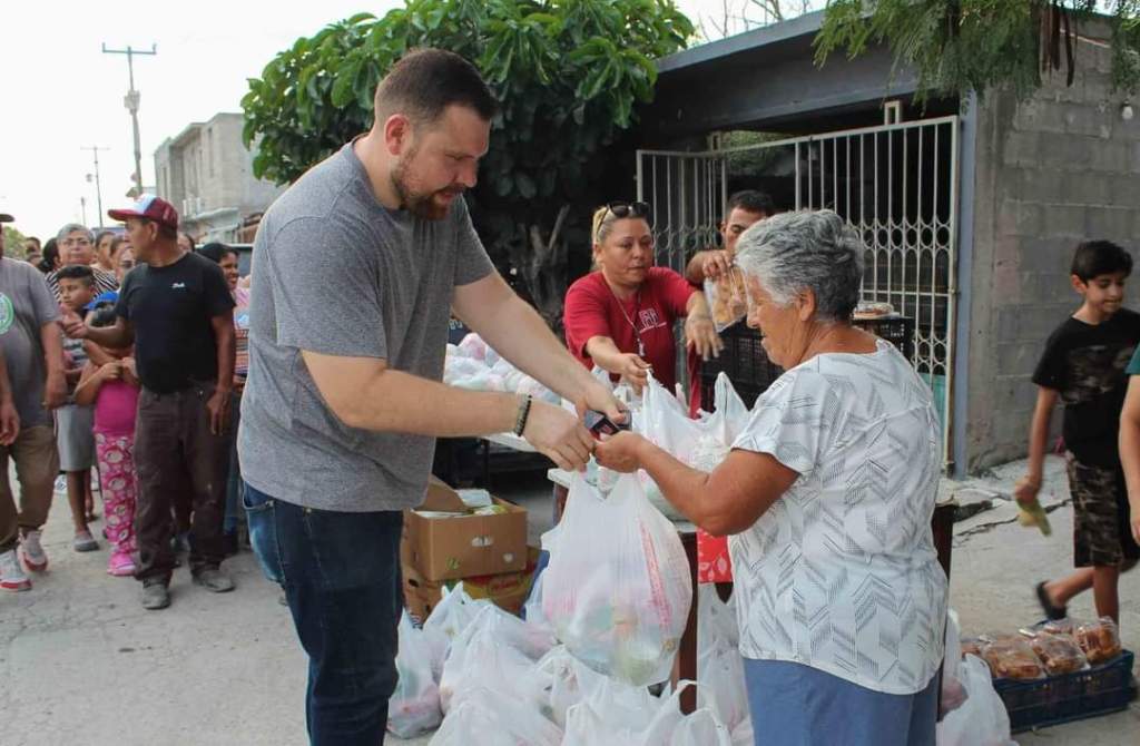 El Presidente de la Asociación Civil «De la mano con Río Bravo» visitó la colonia Las Brisas, donde hizo entrega de comestibles a decenas de familias.
