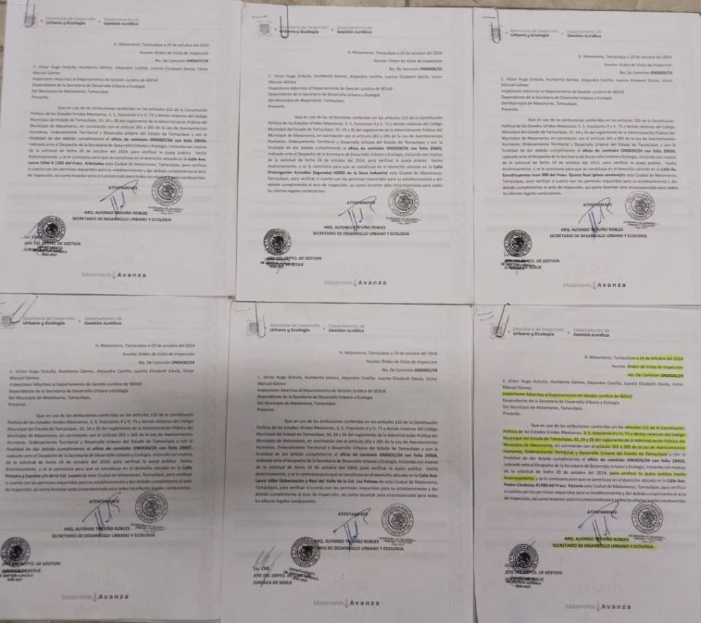 A través de una solicitud de información, la SEDUE municipal informó que la coordinación jurídica a cargo del Licenciado Diego Almanza, el 29 de octubre de 2024, giraron órdenes de visita de inspección a las sucursales de SORIANA en Matamoros, a consecuencia de varias denuncias ciudadanas, por ejemplo: