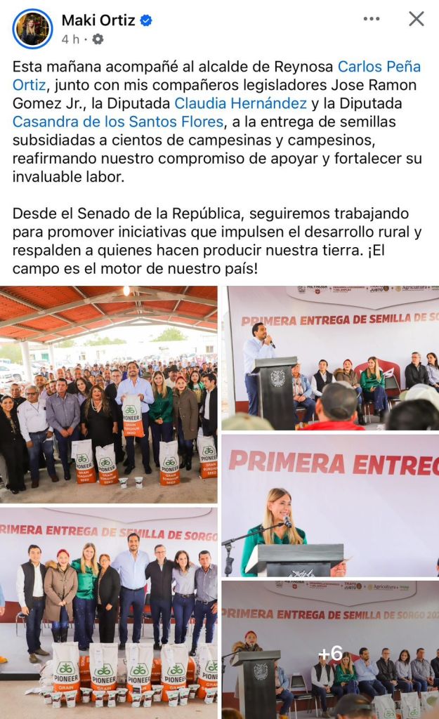 La entrega de semillas subsidiadas en Reynosa, encabezada por el alcalde Carlos Peña Ortiz, la senadora Maki Ortiz, y los legisladores José Ramón Gómez Jr., Claudia Hernández y Casandra de los Santos, debería haber sido un evento técnico enfocado en apoyar el desarrollo rural. Sin embargo, lo que pudo ser un acto transparente para fortalecer al campo, terminó sembrando más dudas que sorgo.