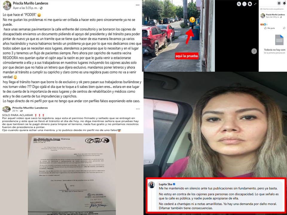 La situación inicia luego de que una ciudadana exhibiera en redes sociales el acoso de las trabajadoras de la regidora y denunciara públicamente cómo la funcionaria habría utilizado su poder para manipular a Tránsito Municipal. En su publicación, la usuaria de redes Priscila Murillo Landeros relató que, tras la reciente pavimentación de la calle frente al consultorio (de traumatología), se borraron los cajones azules destinados a personas con discapacidad.