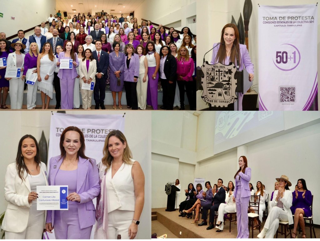 Lo anterior lo expresó ante figuras del poder Ejecutivo, Legislativo y liderazgos femeninos de toda la entidad tamaulipeca, durante el evento en el Congreso del Estado, donde Cantúrosas Villarreal rindió protesta como integrante de la Comisión de Participación Política y Liderazgos Femeninos del Capítulo Tamaulipas de la Colectiva 50+1, red nacional dedicada a impulsar la participación de las mujeres en la vida pública y promover la igualdad sustantiva.