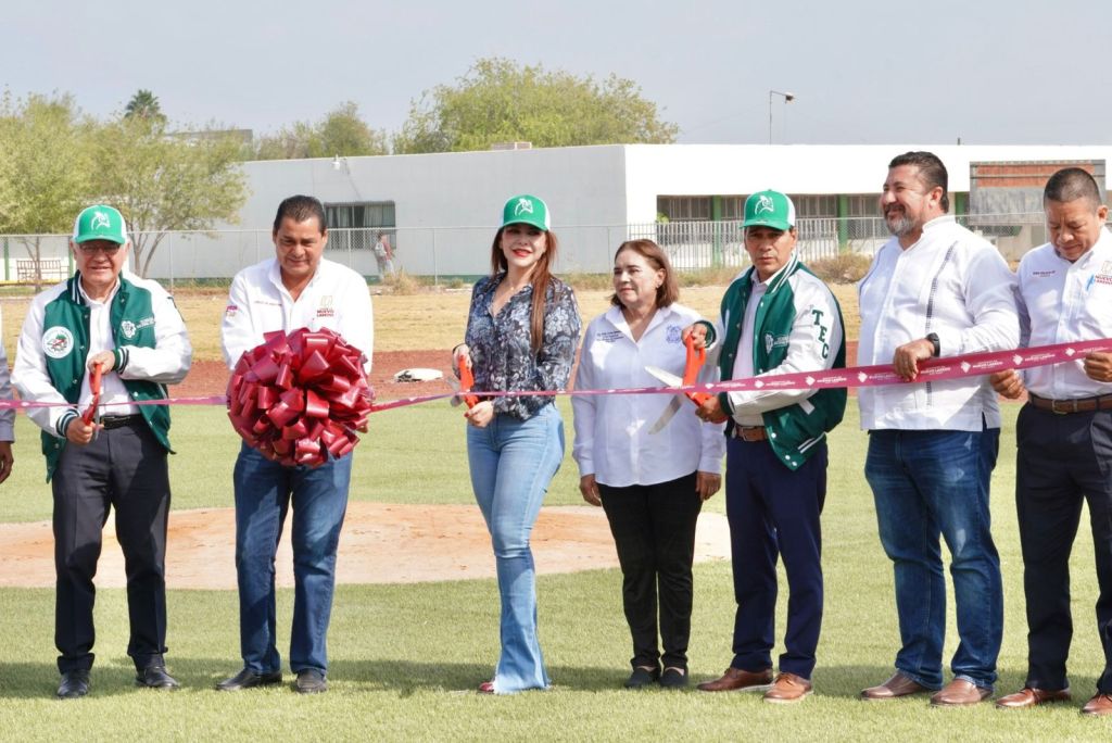 La rehabilitación del campo de béisbol requirió una inversión de 10 millones 572 mil 136 pesos, abarcando una superficie de 9 mil 516 metros cuadrados que incluye cerca perimetral, backstop, jardinería, sistema de riego, instalación eléctrica, gradas con cubierta, subestación, líneas de foul, tablero, bancas para dogout y pantalla protectora para pitcher.