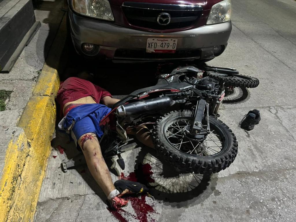 La motocicleta se impactó contra un automóvil Nissan March, modelo 2015, color gris, con placas del estado de Tamaulipas, conducido por Brayan “N”, de 26 años, quien presuntamente no respetó una señal fija de alto.