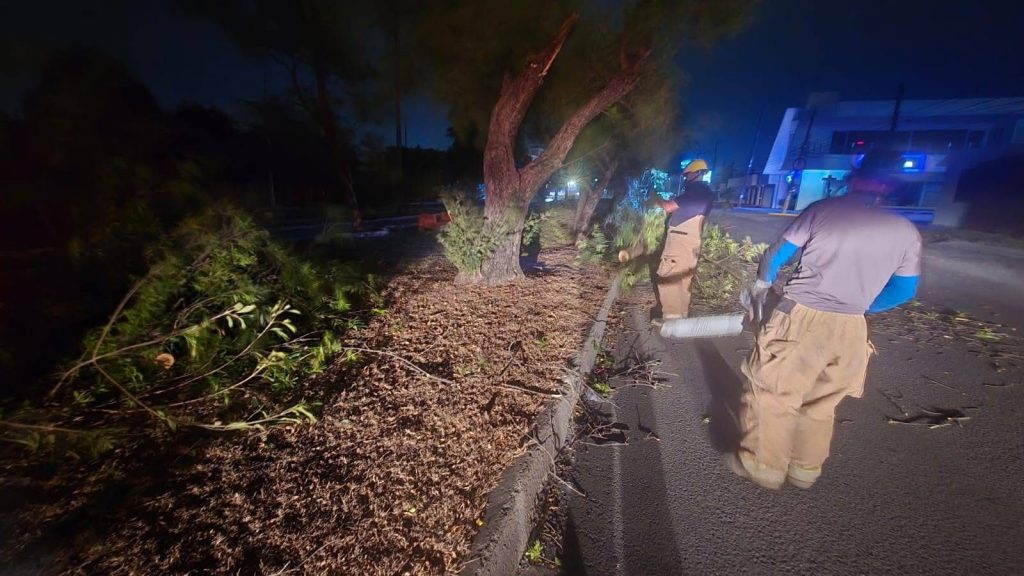 Por instrucción del alcalde Eduardo Gattás Báez, se procedió al retiro de ramas de árbol y palmeras para restablecer la vialidad en las calles Michoacán, 8 Matamoros, avenidas Del Valle, Teocaltiche, Hombres Ilustres, Carrera Torres y Tamatán.