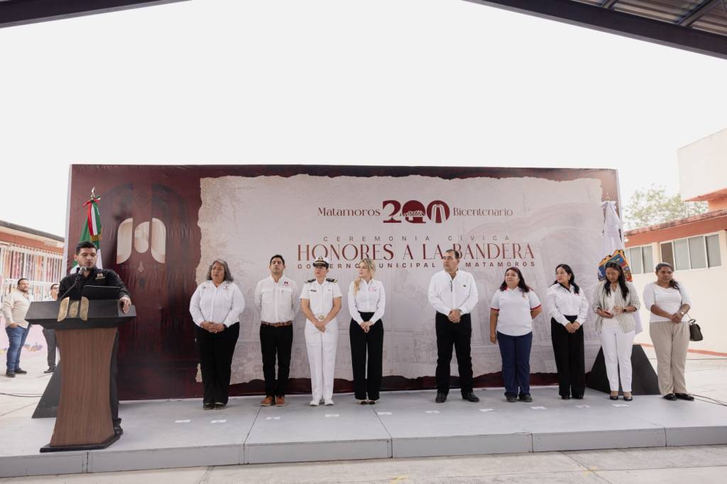 H. Matamoros, Tamaulipas.- Comprometido con la educación y el fortalecimiento de la identidad nacional, el alcalde Beto Granados encabezó la ceremonia de honores a la bandera en el Jardín de Niños «Valentín Contreras», donde reafirmó su apoyo para mejorar las condiciones de aprendizaje de la niñez matamorense.